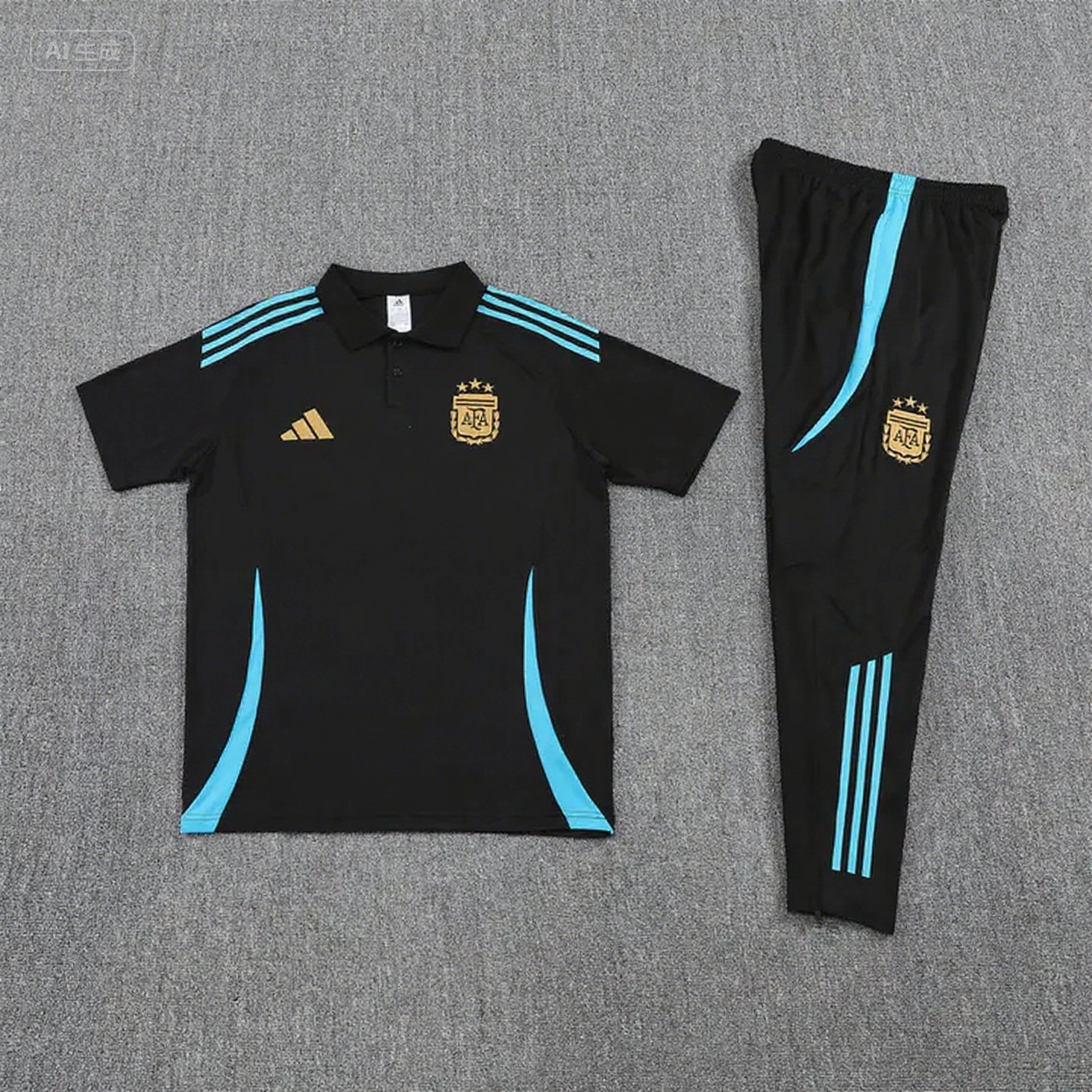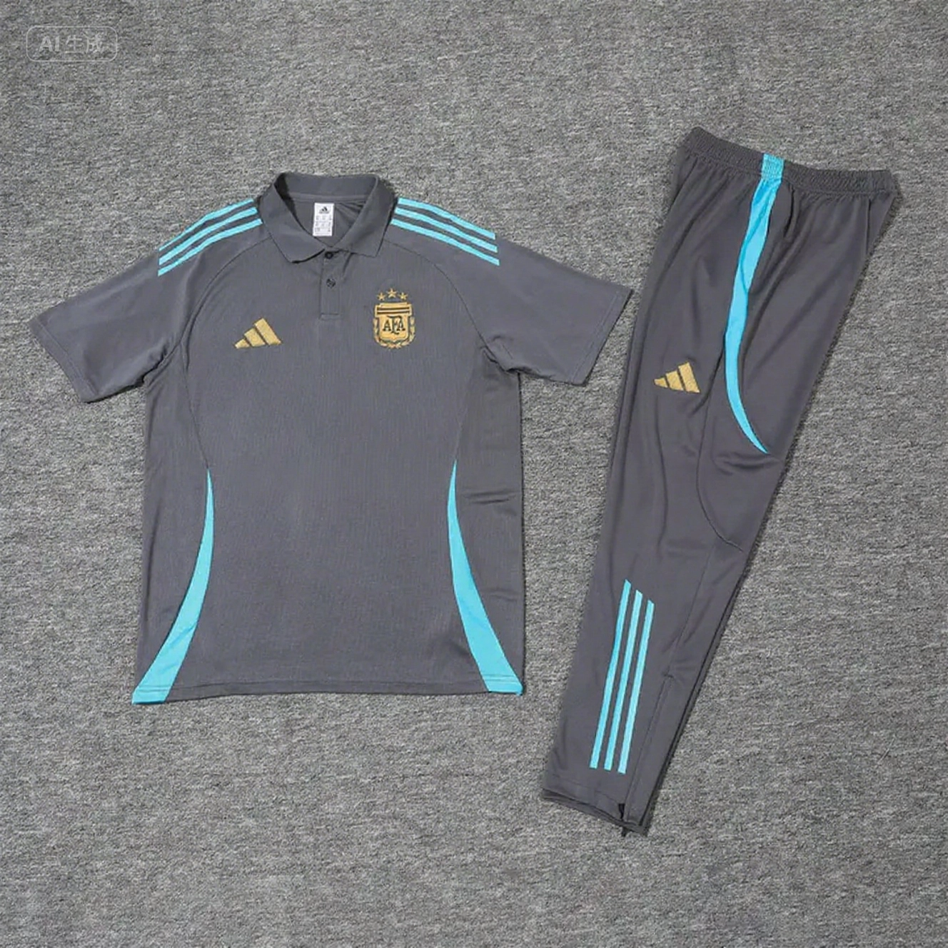 Argentina 2025 POLO Short-Sleeve Training Set - Grey Top and Pants with Blue Stripes