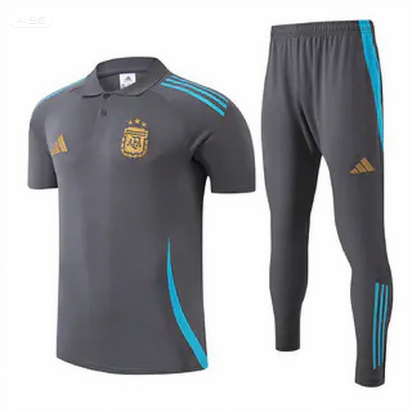 • Argentina 2025 POLO Short-Sleeve Training Set - Grey Top and Pants with Blue Stripes