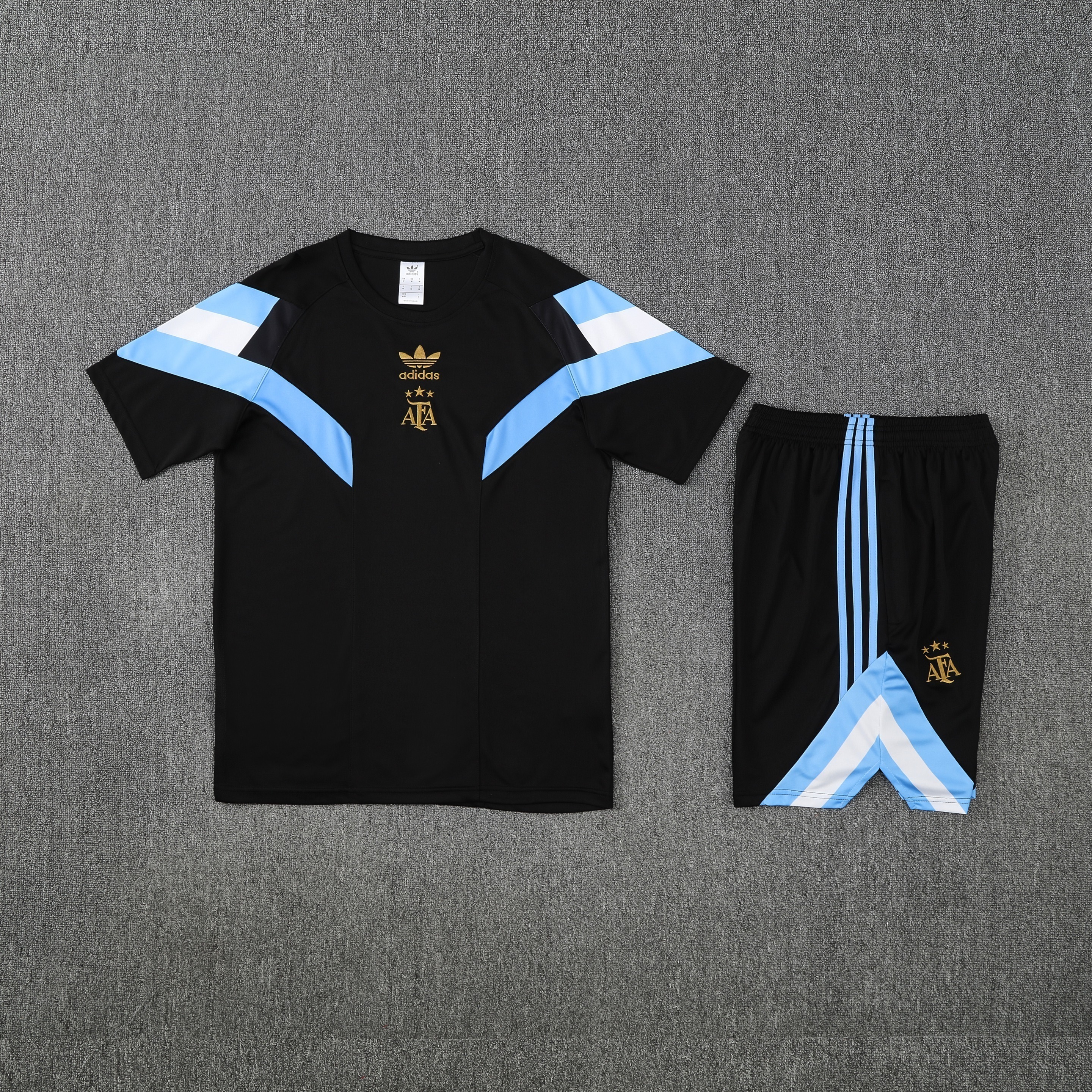 • Argentina 2025 Retro Short-Sleeve Training Set - Black Top and Black Shorts