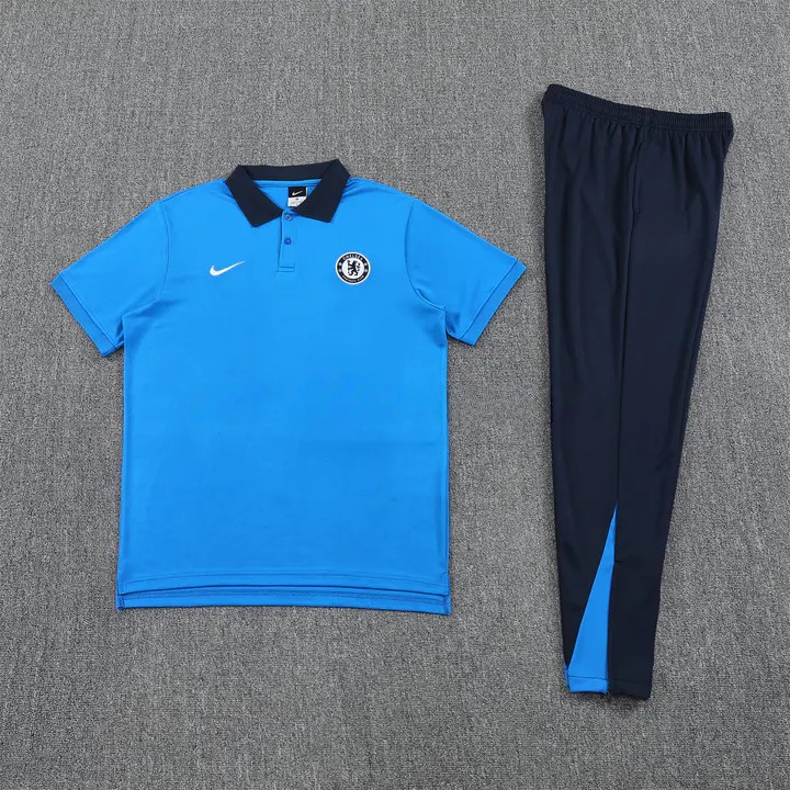 Chelsea 25-26 POLO Short-Sleeve Training Set - Blue Top and Deep Blue Pants