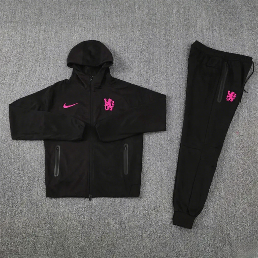Chelsea 24-25 Training Hoodie Set - Pink Hoodie and Black Pants