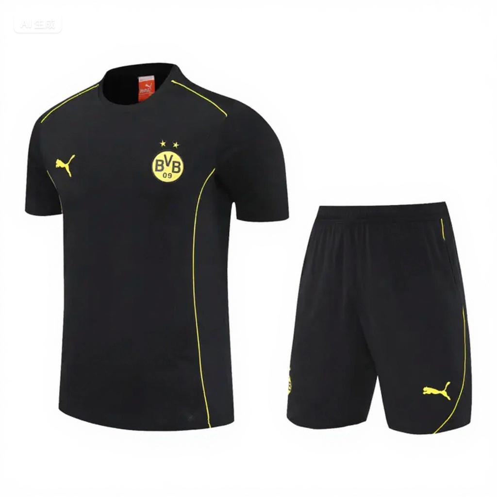 Dortmund 25-26 Short-Sleeve Training Set - Black Top & Black Shorts