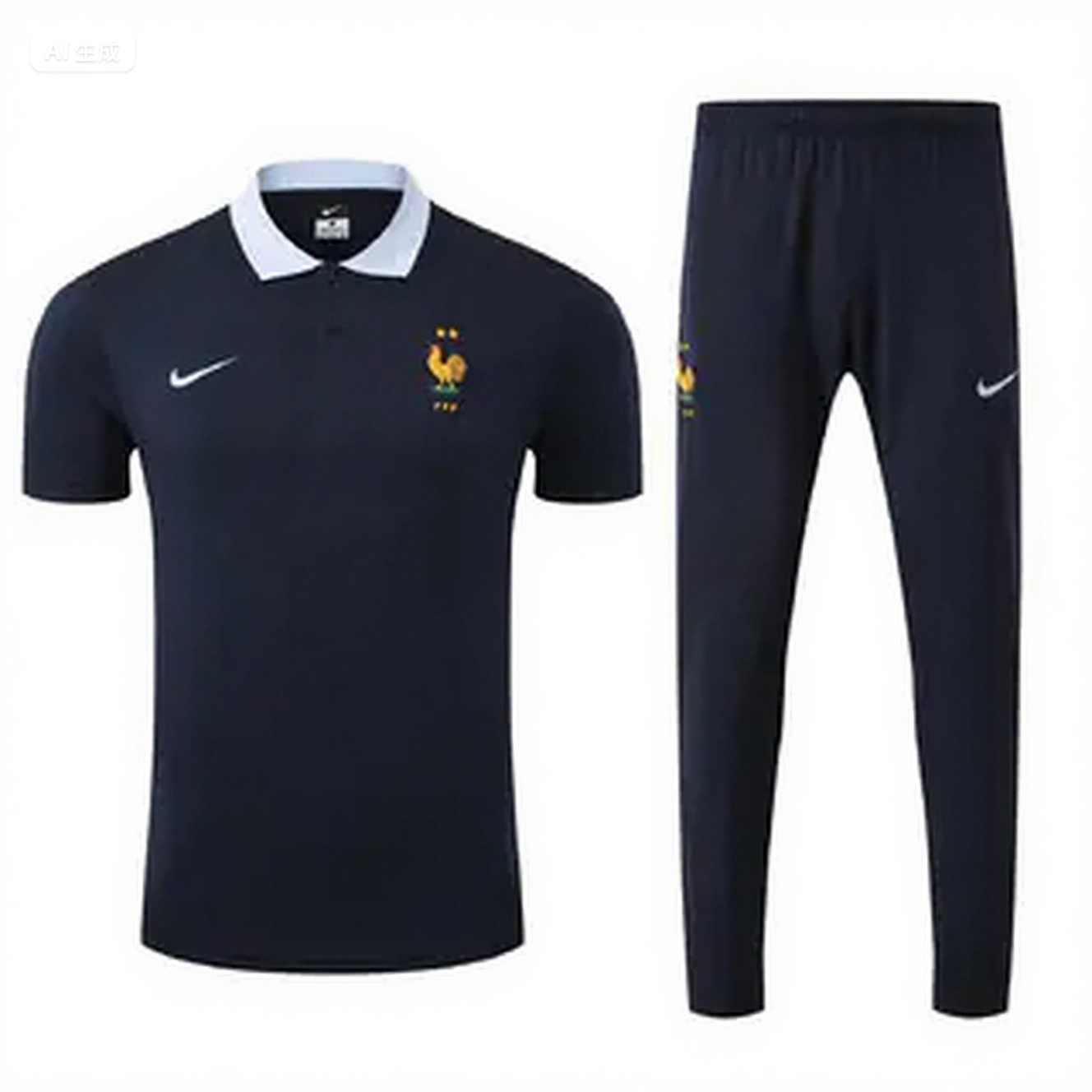 France 2025 POLO Short-Sleeve Training Set - Deep Blue Top and Pants