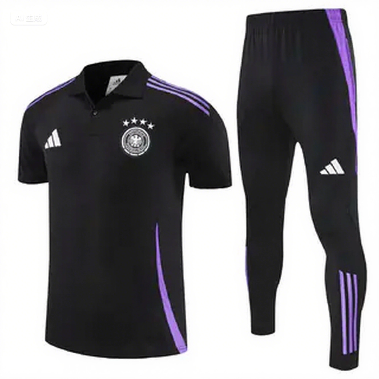 • Germany 2025 POLO Short-Sleeve Training Set - Black Top and Pants