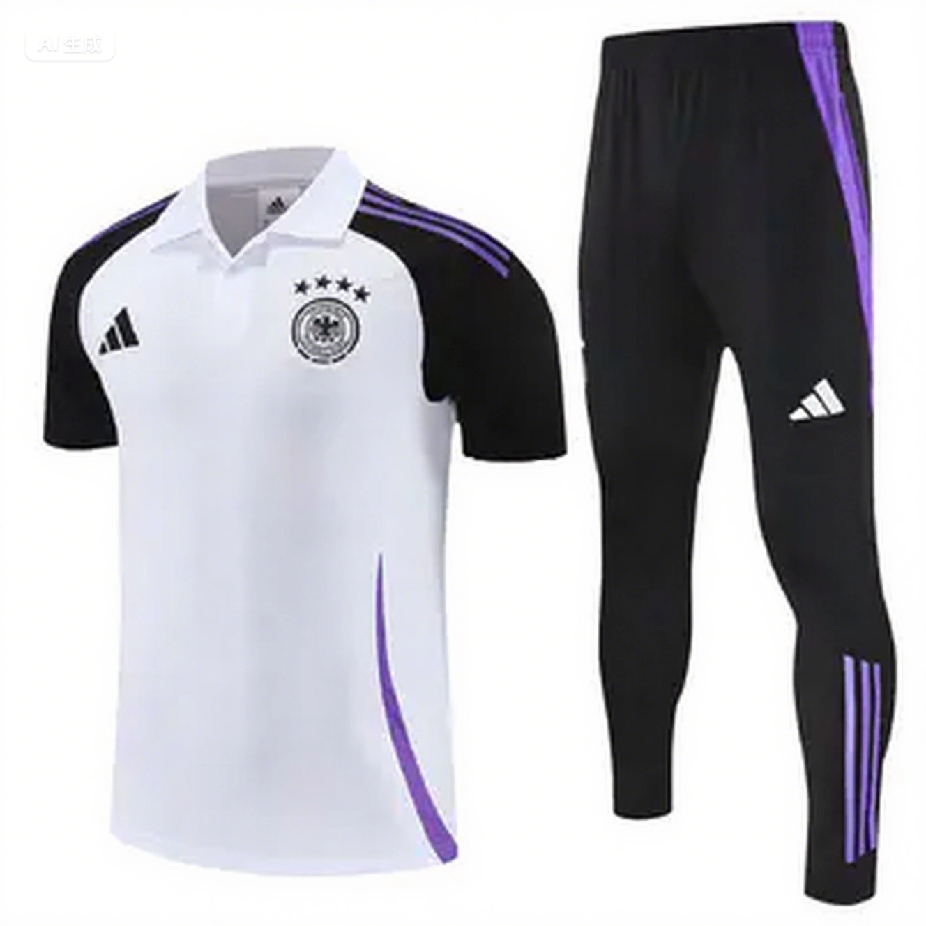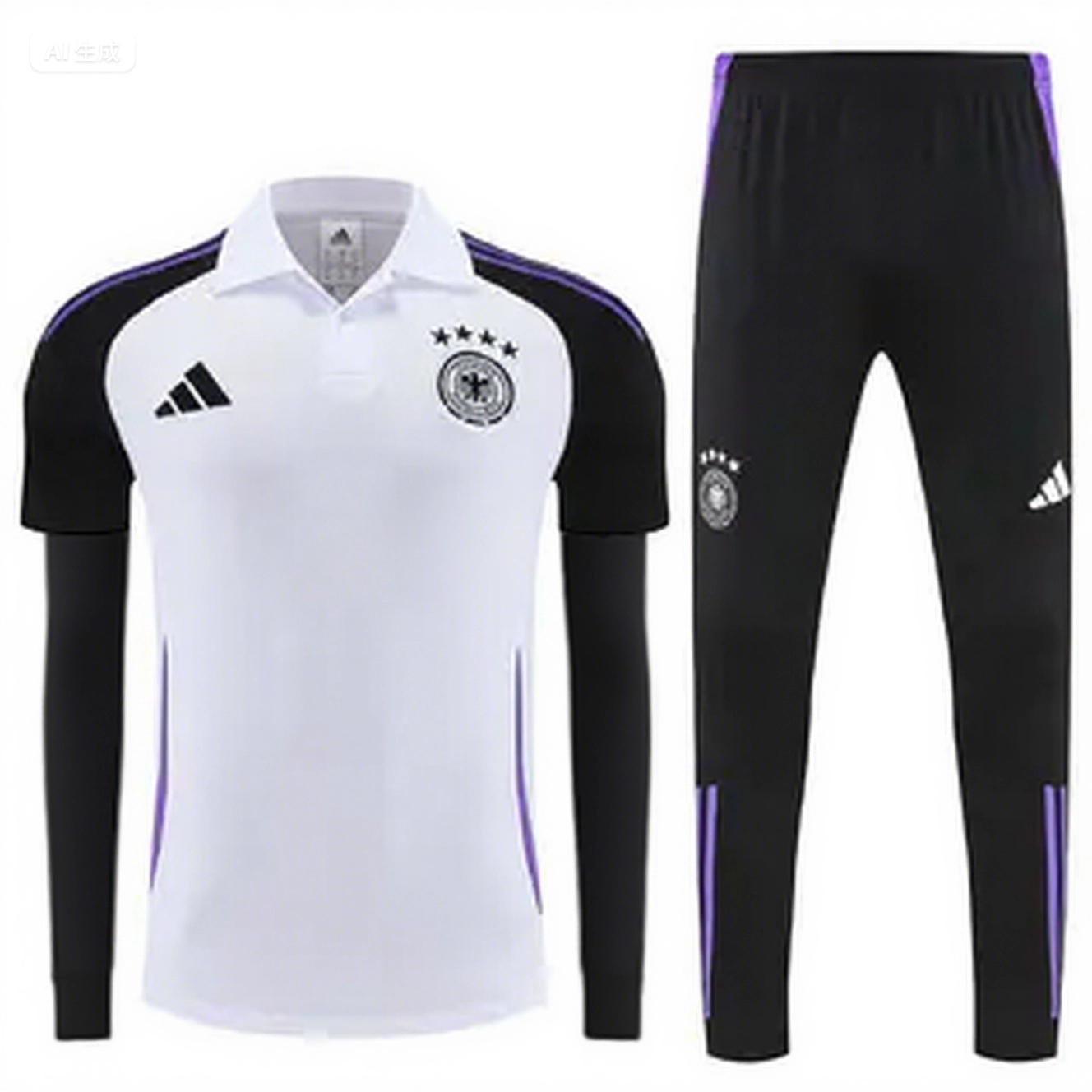 • Germany 2025 POLO Short-Sleeve Training Set - White Top Black Pants