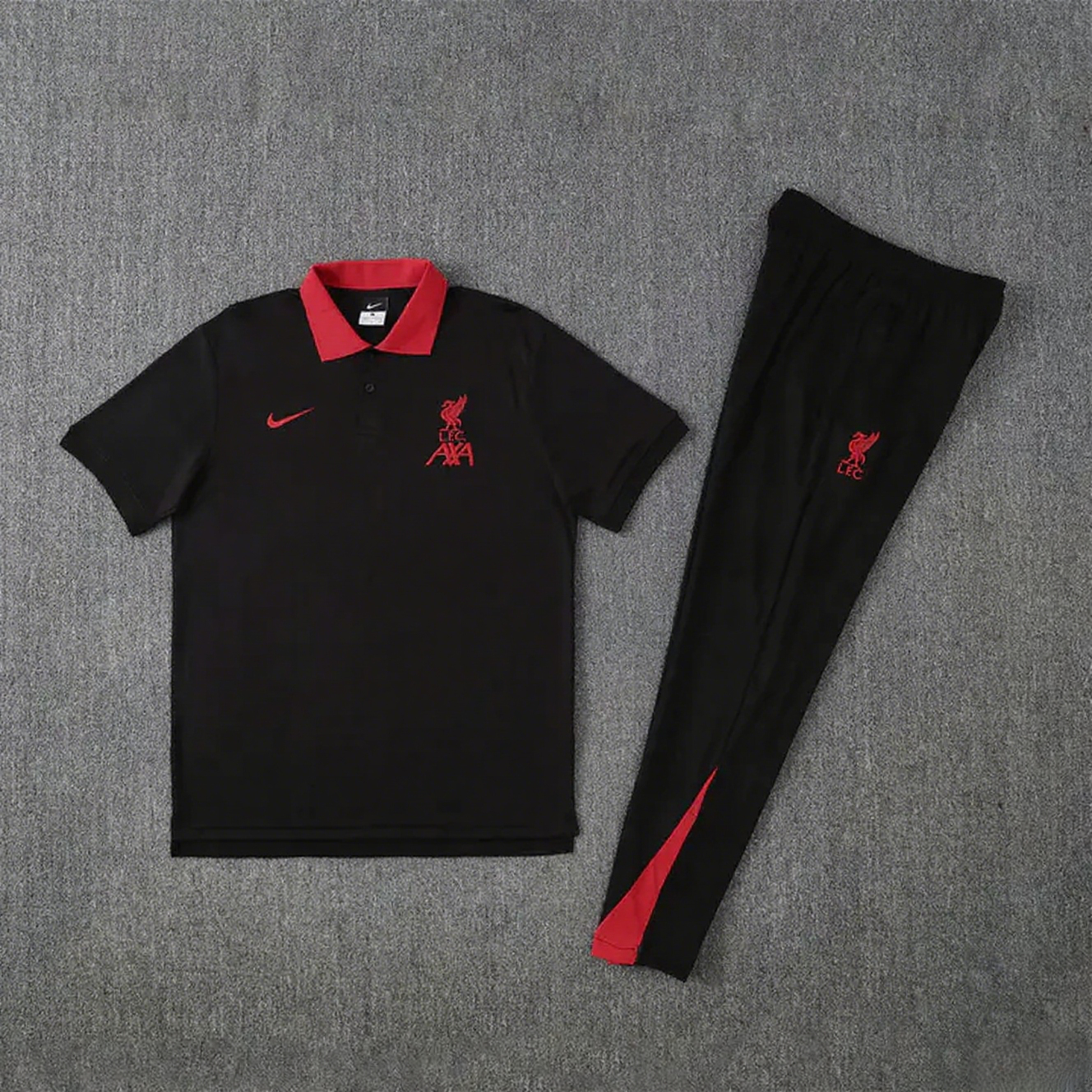 Liverpool 25-26 POLO Short-Sleeve Training Set - Red Top and Black Pants