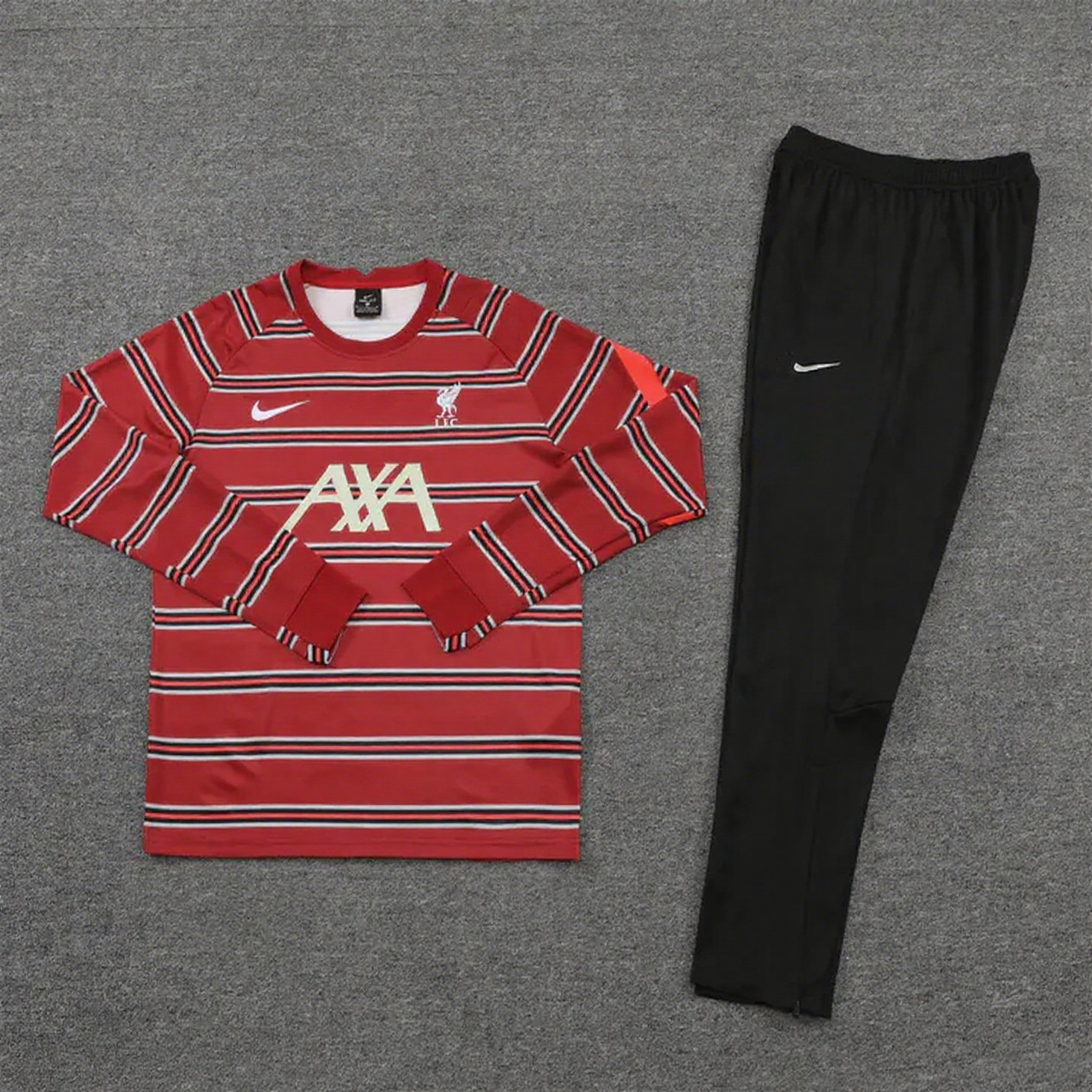 Liverpool 24-25 Long Sleeve Training Set - Red Stripe Top and Black Pants