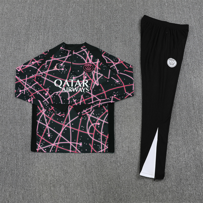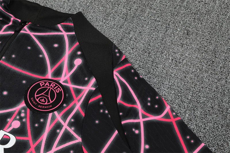 Paris Saint-Germain PSG 25-26 Long Sleeve Training Set -Black pink Top and Black Pants