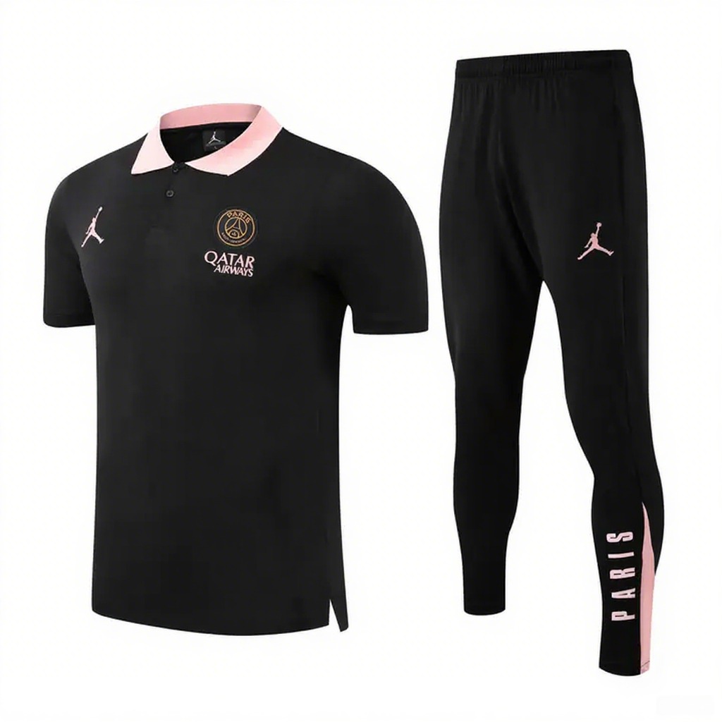 Paris Saint-Germain PSG 25-26 POLO Short-Sleeve Training Set - Black Top and Pants