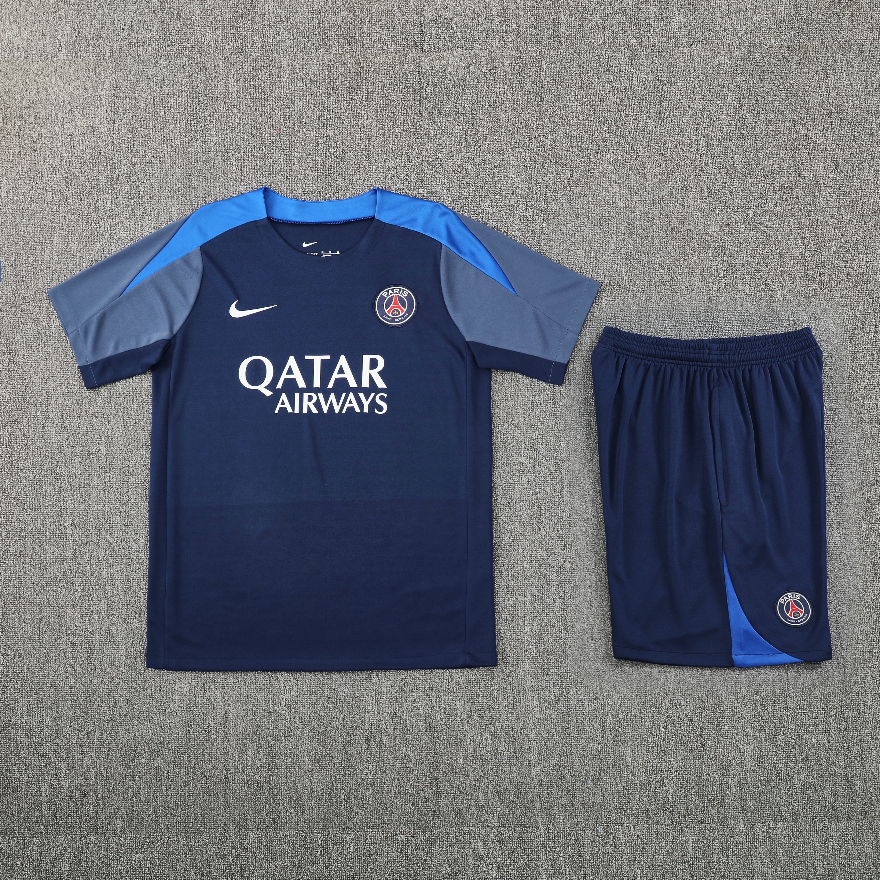 Paris Saint-Germain PSG 25-26 Short-Sleeve Training Set-Grey blue Top and Blue Shorts