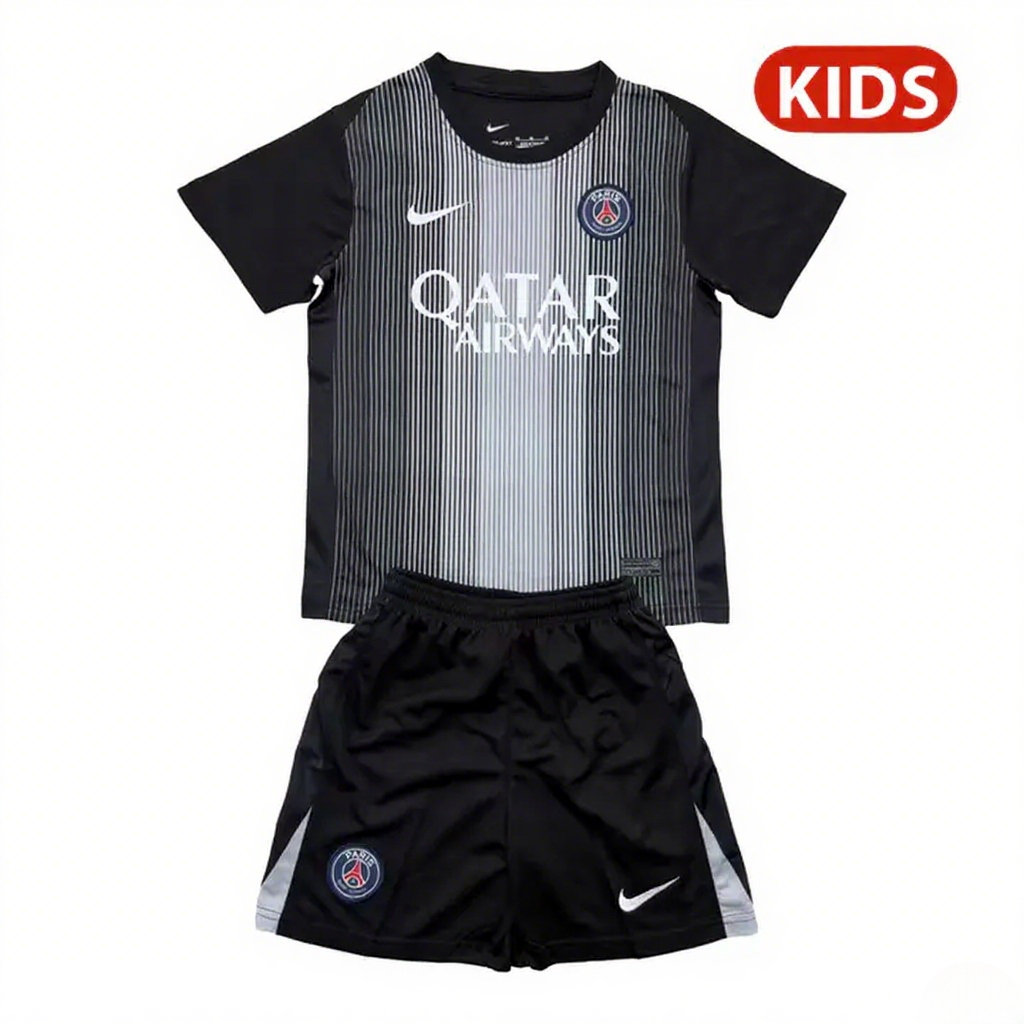 Paris Saint-Germain PSG 25-26 Black Goalkeeper Kids Kit