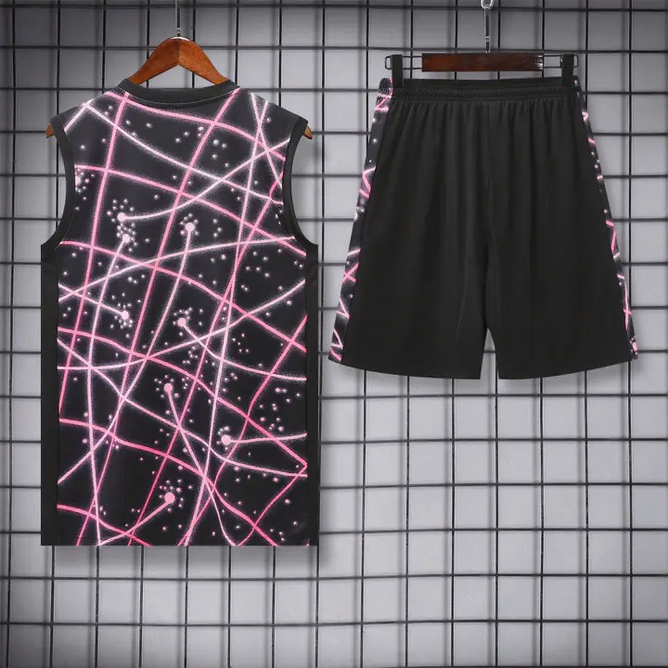 Paris Saint-Germain PSG 25-26 Vest Training Set - Pink Fluorescent Rays Black Vest & Black Shorts
