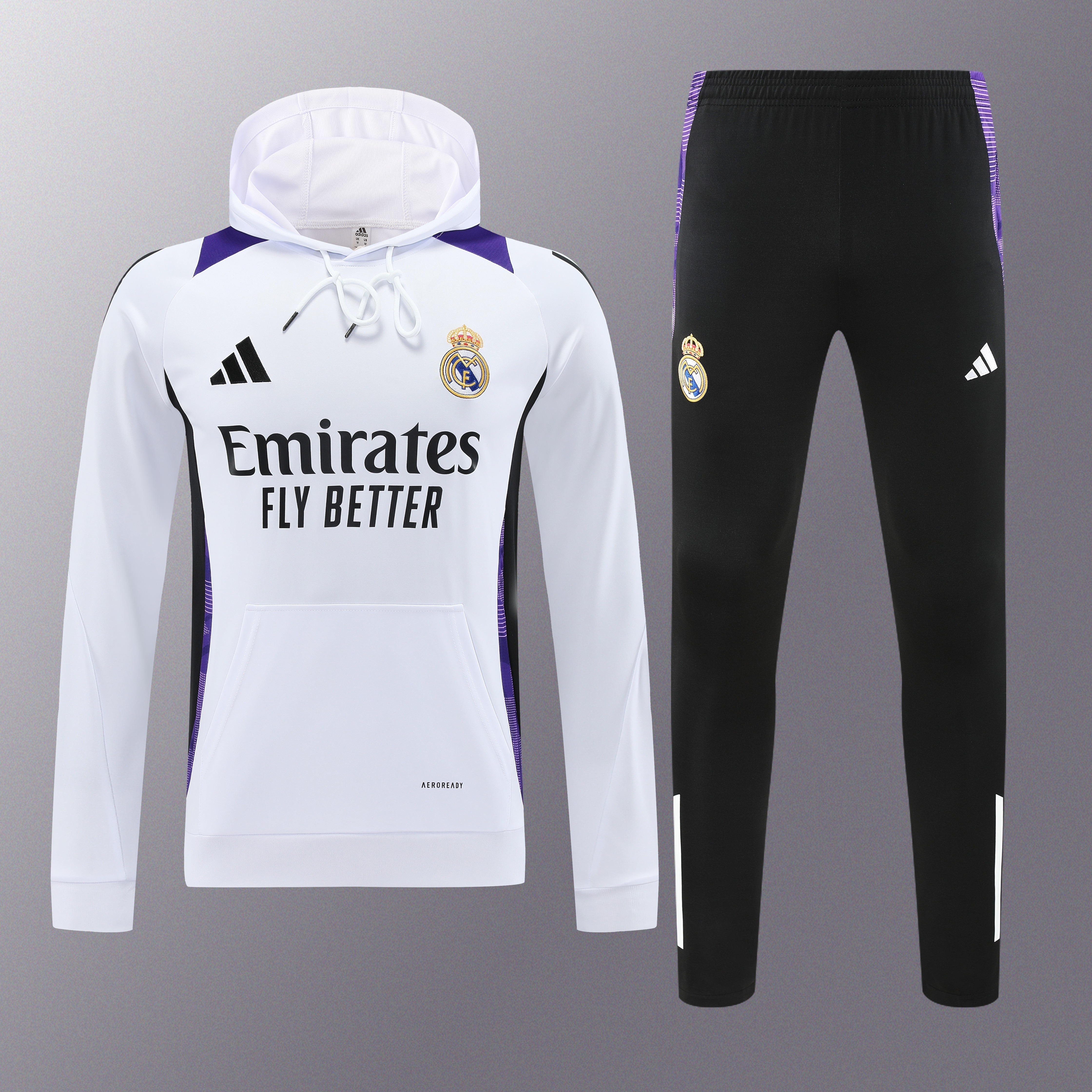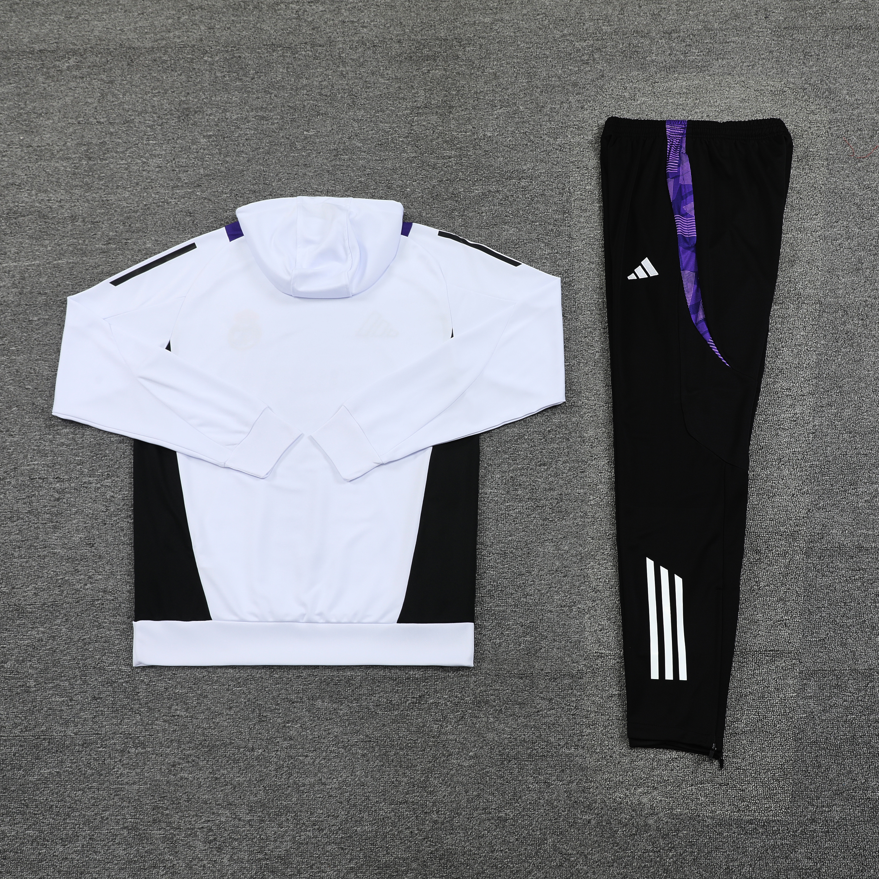 Real Madrid 24-25 Training Hoodie Set - White top & Black trousers