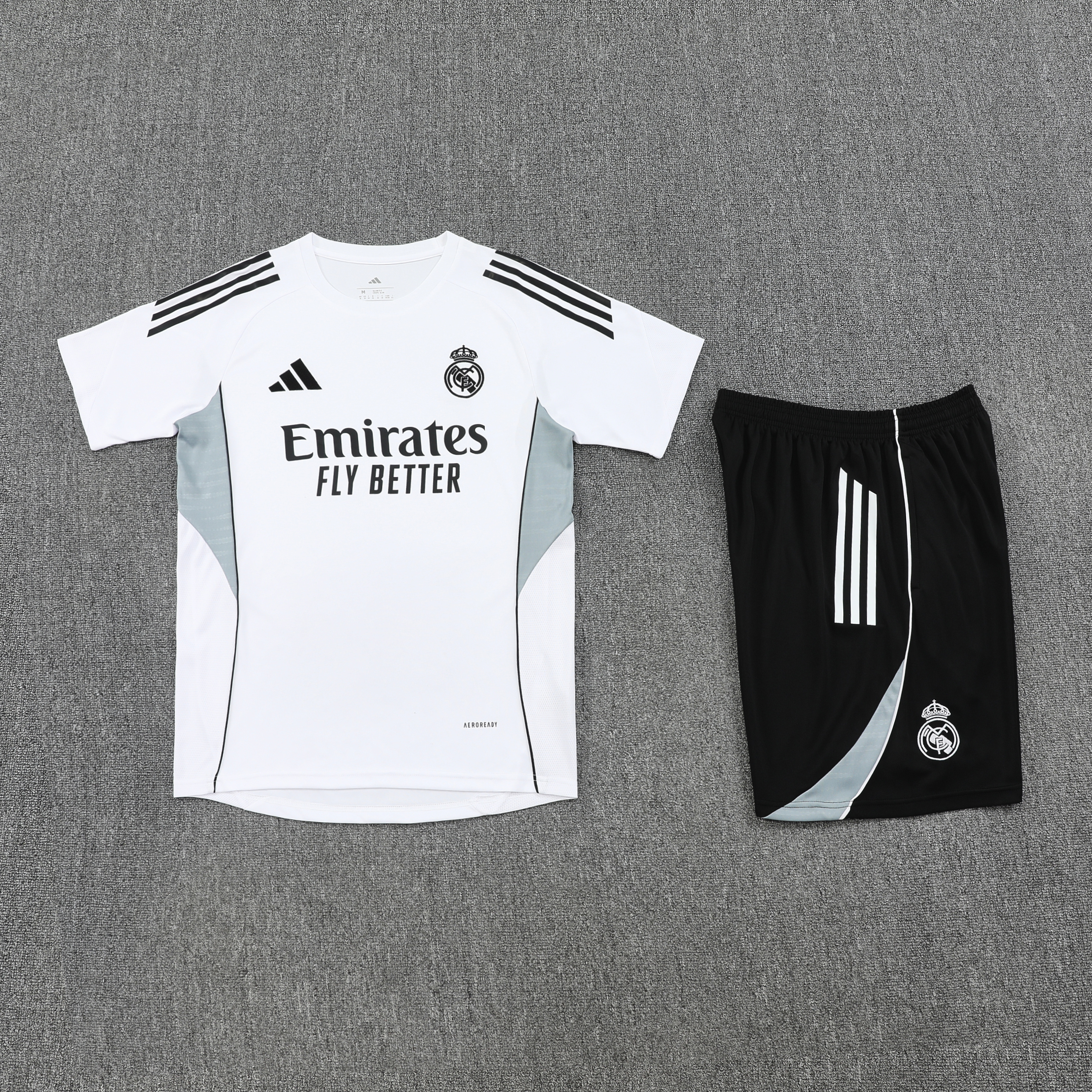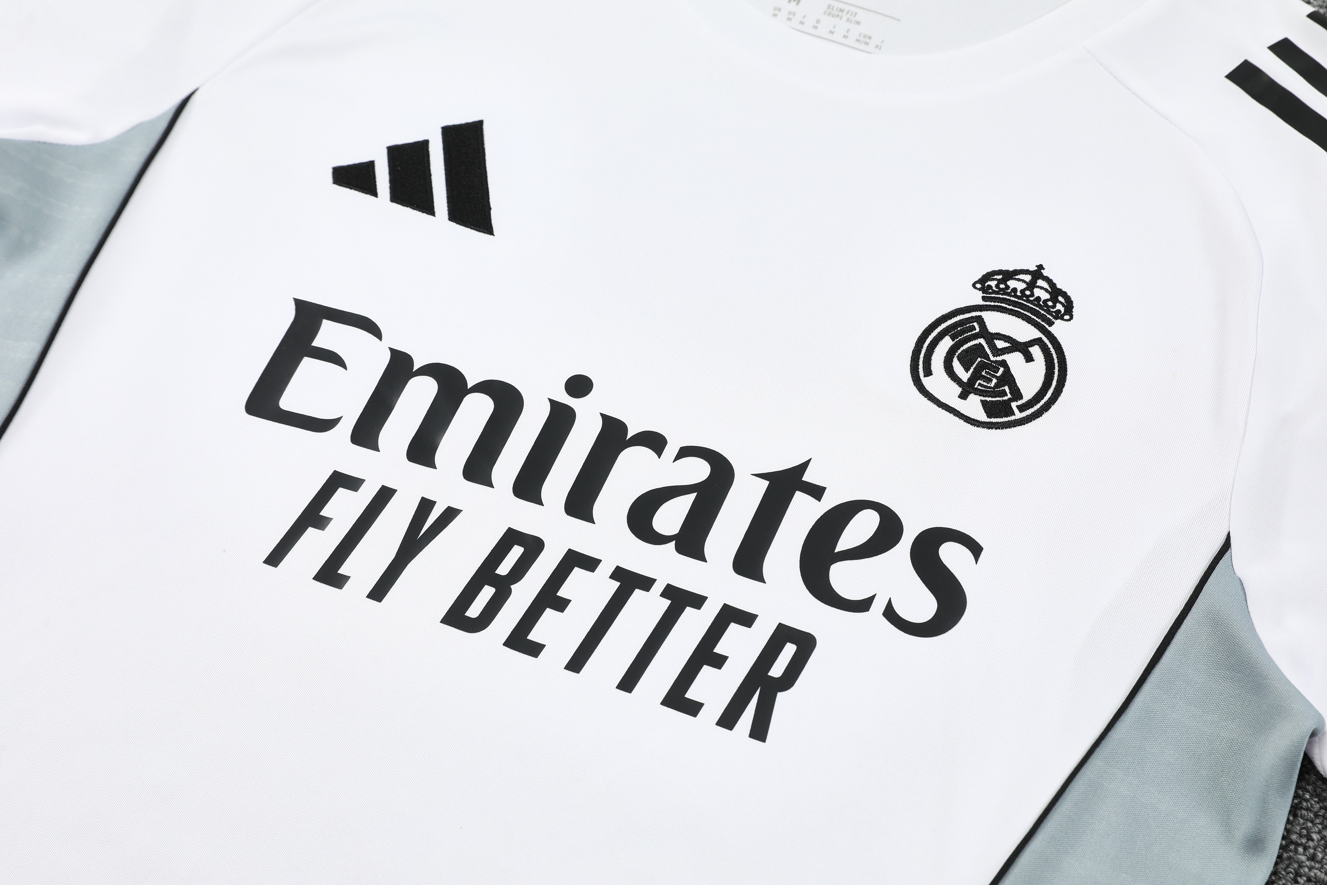 Real Madrid 25-26 Short Sleeve Training Set-White green Top and Black Shorts