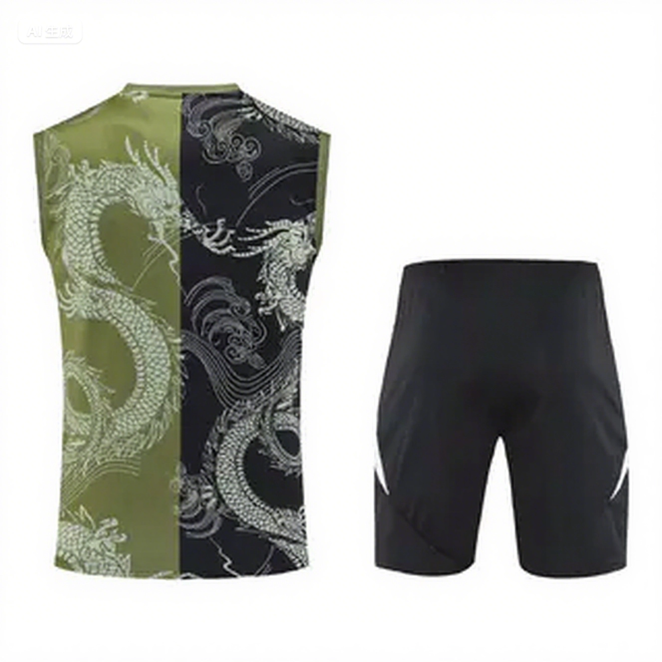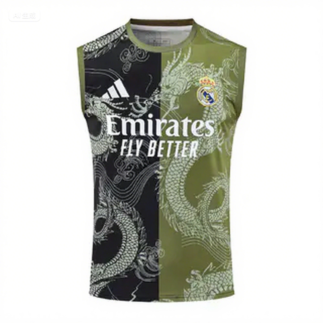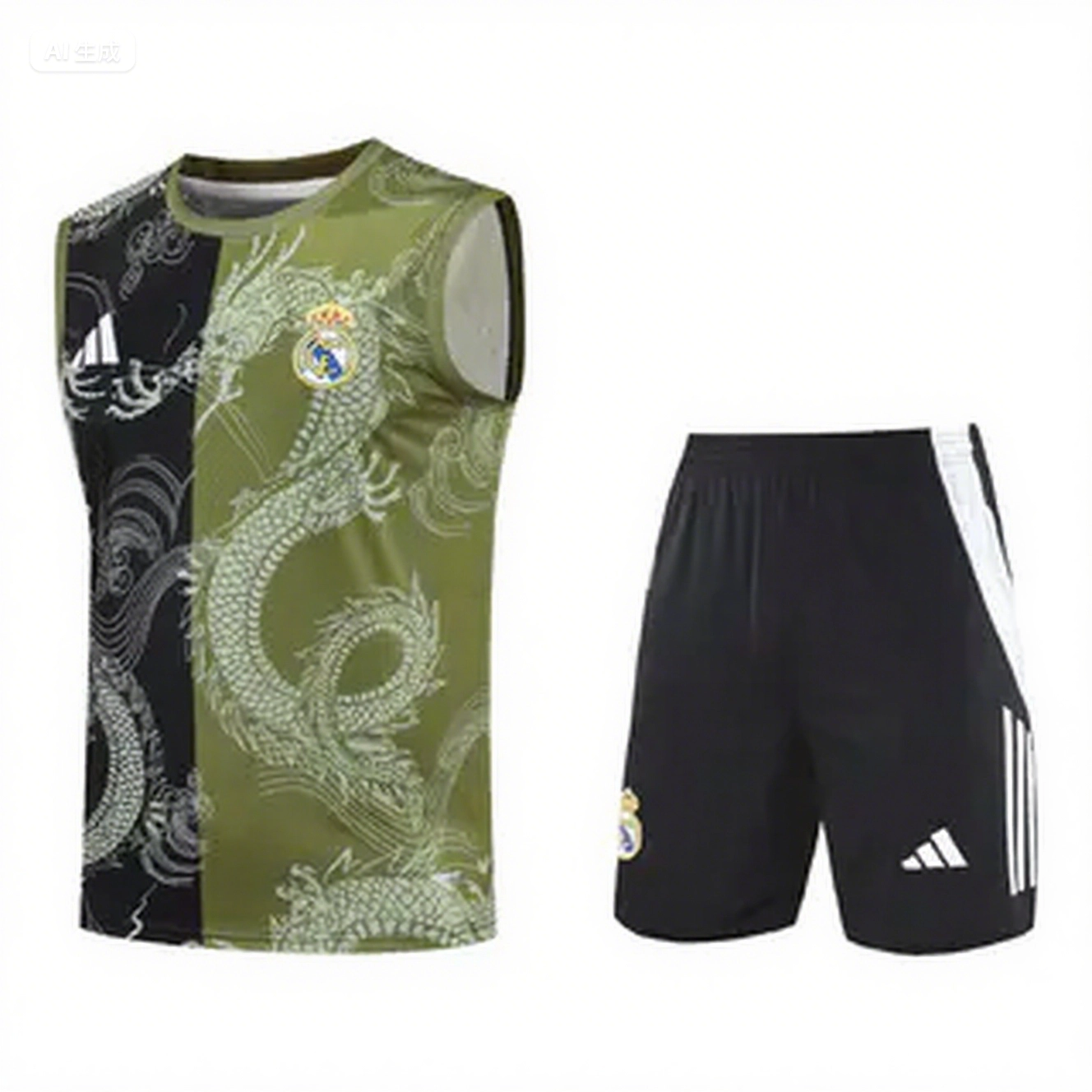 Real Madrid 25-26 Vest Training Set - Green-Black Dragon Vest & Black-White Shorts